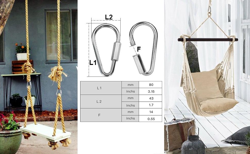 I couldn't find these anywhere for our sons wooden play set. At the store they were all too small or too big. We now have both swings hanging and the kids can swing together.