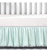 The TILLYOU Ruffled Crib Skirt features a 14-inch drop crafted from a soft yet durable microfiber and silk blend. Designed with charming ruffles and pompom accents, it effortlessly conceals crib bases while adding a tailored, gender-neutral touch to any nursery. Lightweight and easy to fit, this crib skirt combines functionality with trendy nursery aesthetics.