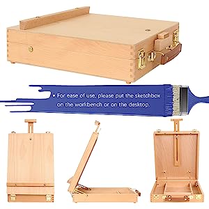 The Kuyal Art Supplies Box Easel is a versatile and portable painting storage solution designed for artists of all skill levels. Made from high-grade beech wood, it features a sturdy construction with four divided compartments for organized storage. The easel adjusts to accommodate canvases up to 20 inches high and folds down for easy transport, making it ideal for outdoor painting and sketching.