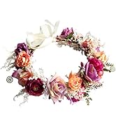 The LLinfflr Women Floral Crown is a rosy, adjustable flower headband crafted from fabric flowers and plastic leaves on a flexible wire frame. Measuring between 5.66 and 6.14 inches in diameter, it features a ribbon for custom sizing and shape recovery after travel. Ideal for weddings, parties, festivals, and photoshoots, this lightweight, comfortable floral halo offers a natural look that draws compliments and enhances any outfit.
