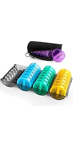 These are the best pillow cases I’ve ever bought. The design is perfect to hold all my meds and vitamins for the day. I have six of long larger pills and then six vitamins for a total of 12. Most other cases I’ve had don’t fit them well and sometimes they break inside the case because it’s too tight but not with this one! The case is easy to open and easy to use and I love the color black. Plus there’s four separate cases for each week so when I travel, I can take as many as I need. In the video below, I have placed one day’s pills in the case you can see the pills beside it to go into it