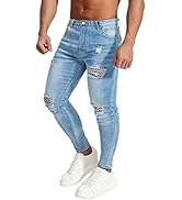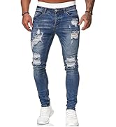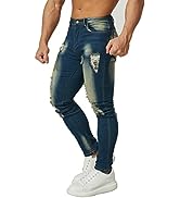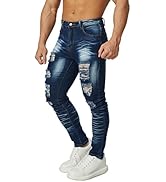 HUNGSON Men's Blue Slim Fit Jeans combine 98% cotton and 2% spandex for a comfortable stretch fit. Featuring a trendy ripped and destroyed look with distinctive white side stripes and ankle zippers, these skinny jeans offer a modern silhouette with practical 5-pocket styling. Perfect for daily wear, they elevate any outfit with a cool, confident edge.