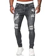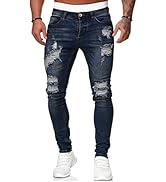 These are so ugly. They look like they're made out of spandex. They look more like leggings. The distressed part is awful looking. They look like they're for women, not men. The overall fit is terrible. Loose on one ankle and too tight on the other.