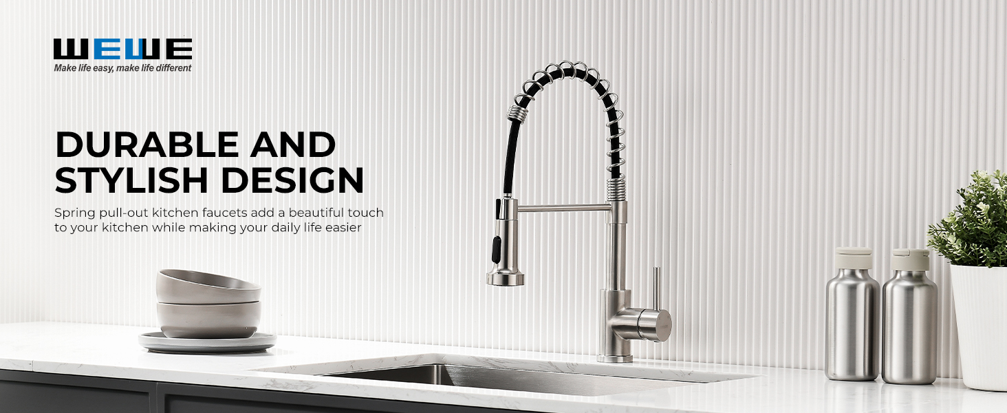 Kitchen Sink Faucets, Kitchen Commercial Faucet WEWE Single Handle Brushed Nickel Pull Down Sprayer Spring Kitchen Faucet.