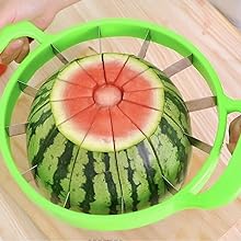 The ZaH Melon Slicer is a lightweight, handheld kitchen tool featuring 12 sharp stainless steel blades designed to effortlessly cut melons and watermelons into uniform slices. Made from safe, non-toxic materials and dishwasher safe for easy cleaning, this multifunctional slicer is perfect for home, office, travel, camping, and picnics.