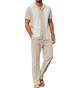 The COOFANDY Men 2 Piece Linen Outfit features a breathable 60% cotton, 30% viscose, and 10% linen blend fabric designed for superior comfort and coolness. Inspired by vintage 1960s beachwear, this set includes a Cuban collar button-down shirt and loose elastic-waist pants with practical pockets. Ideal for casual wear, beach outings, and summer events, it offers a relaxed fit that balances style and ease, making it a must-have for the modern millennial seeking effortless, sophisticated summer fashion.
