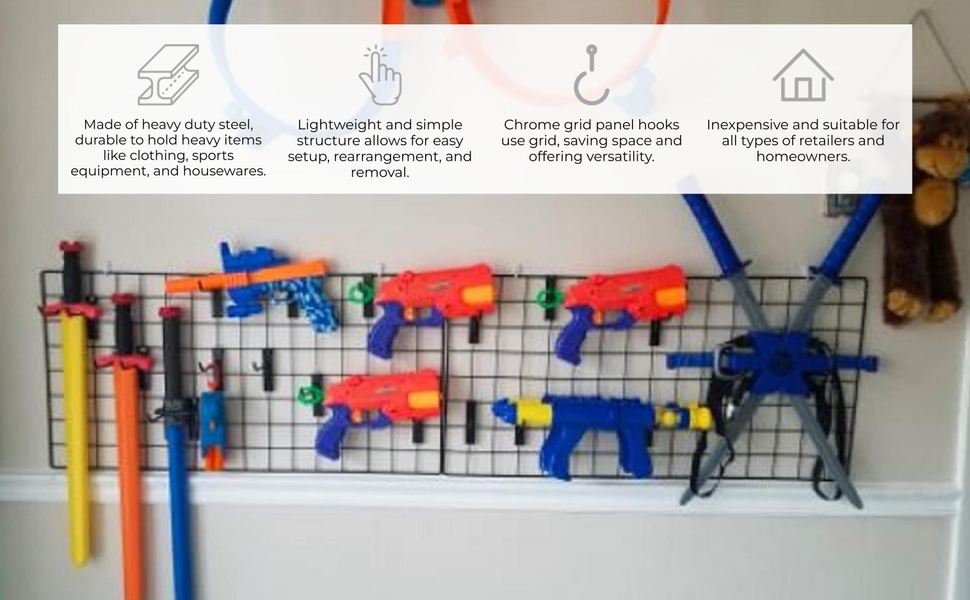 The Q1 Beads Stainless Steel Grid Panel Hooks come in a 12-pack of 4-inch chrome-finished hooks crafted from durable 5mm stainless steel rods. Engineered to hold up to 35 pounds each, these corrosion-resistant hooks are perfect for versatile use across retail displays, home storage, and outdoor setups. Designed for easy wall mounting on metal or concrete surfaces, they combine strength with sleek style to elevate any space.