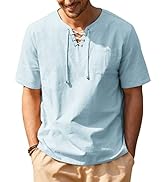 COOFANDYMen Linen Tunic Viking Meditation Shirt 3/4 Sleeve V Neck Beach T Shirts