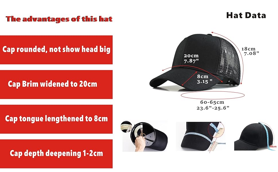 Oversize Large Mesh Trucker Hat Big Head Hats for Men XXL Baseball Cap Breathable Dad Hat Adjustable 23.6"-25.6"