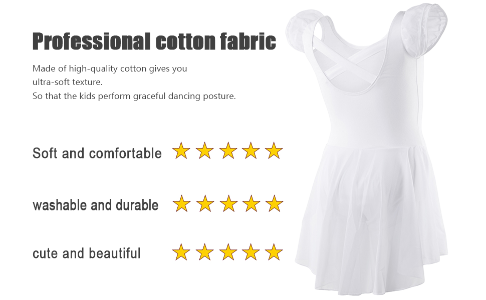 DIPUGBallet Leotards for Girls Dance Leotard Toddler Flutter Sleeve with Skirt (White,Child S)