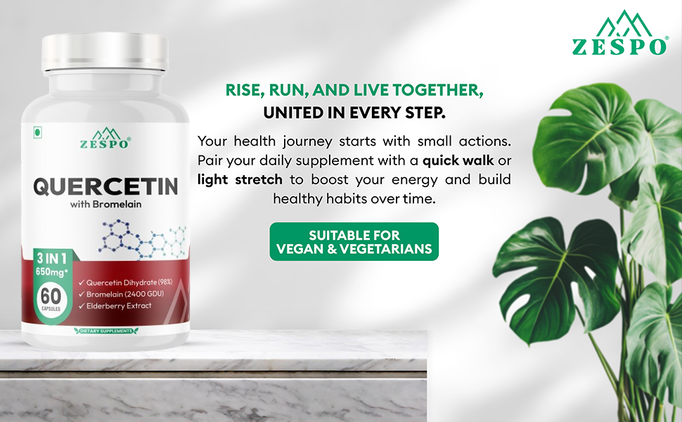 Zespo Quercetin 650mg with Bromelain & Elderberry is a powerful immune support supplement designed to enhance respiratory health and provide antioxidant benefits. Each vegan capsule is formulated with high-quality ingredients, ensuring maximum absorption and effectiveness. Non-GMO and produced in a GMP-certified facility, this product is ideal for those seeking natural wellness solutions.