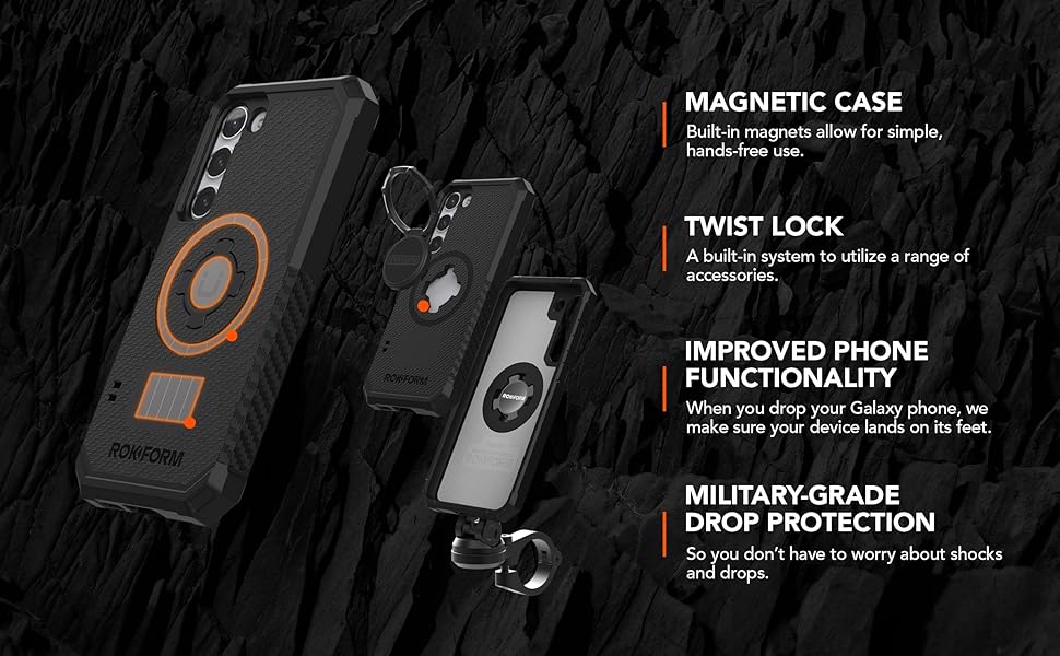 Galaxy S23 Case, Rugged Series, Samsung Protective Cover with RokLock Twist Lock, Drop Tested Military Grade Armor (Black)