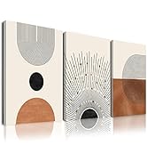 This set of three 12x16 inch framed abstract wall art prints features modern geometric sunset designs in warm beige-orange tones. Printed on premium canvas with fade-resistant, waterproof, and UV-protected ink, each piece is stretched over durable pine wood frames. Ready to hang with included hardware, these minimalist boho prints are perfect for enhancing living rooms, bedrooms, bathrooms, offices, and more, making them a versatile and stylish home decor choice.