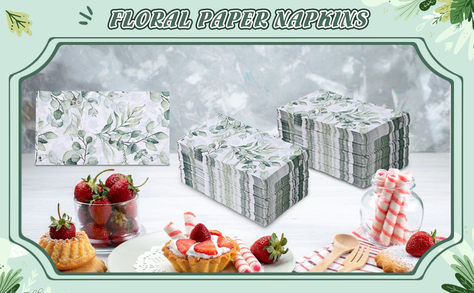 This pack of 100 disposable greenery-themed paper napkins combines stylish design with practical softness and absorbency. Sized perfectly for elegant table settings, these tear-resistant napkins save cleanup time and add a fresh, natural vibe to any event from casual dinners to sophisticated parties.