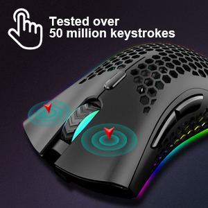 This Wireless Gaming Mouse features a lightweight honeycomb ABS shell for superior comfort and heat dissipation, a reliable 2.4GHz wireless connection with up to 10m range, adjustable DPI settings (800-3200) for precision control, a rechargeable 400mAh battery with USB-C charging, and customizable RGB lighting with 5 modes. Compatible across PC, Mac, and laptops, it’s designed for gamers who demand performance and style without compromise.