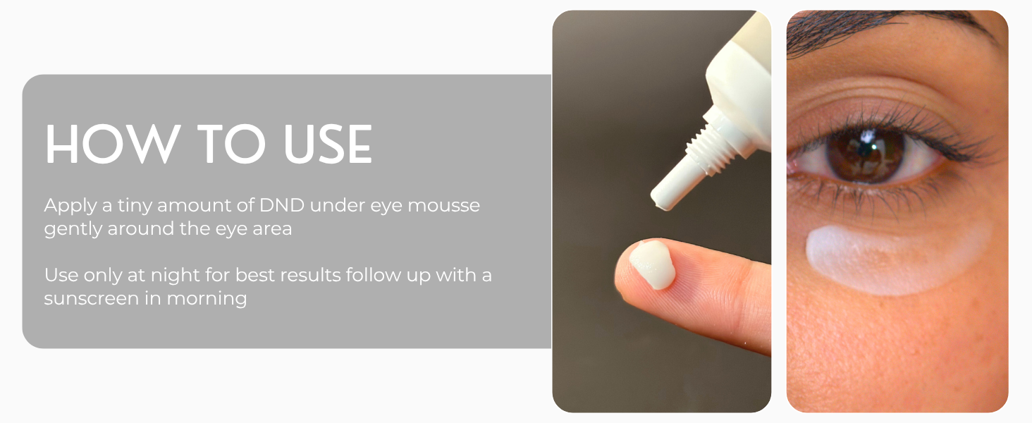Skinvest DND Under Eye Mousse is a 7ml dermatologist-tested skincare solution formulated with caffeine, retinol, peptides, and nourishing botanicals. Designed for all skin types and genders, it reduces dark circles, puffiness, fine lines, and wrinkles by boosting collagen and hydration. Clinically proven and perfect for daily night use, this mousse delivers firm, bright, and youthful under-eye skin.