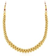 This Malabar Gold and Diamonds 22k (916) Yellow Gold Thushi Necklace is a lightweight yet richly designed traditional Maharashtrian ornament. Crafted with tightly bound hollow gold beads, it features BIS hallmark authenticity and an adjustable dori for a perfect fit. Ideal for weddings, festivals, and gifting, it arrives in secure tamperproof packaging, blending cultural heritage with modern convenience.
