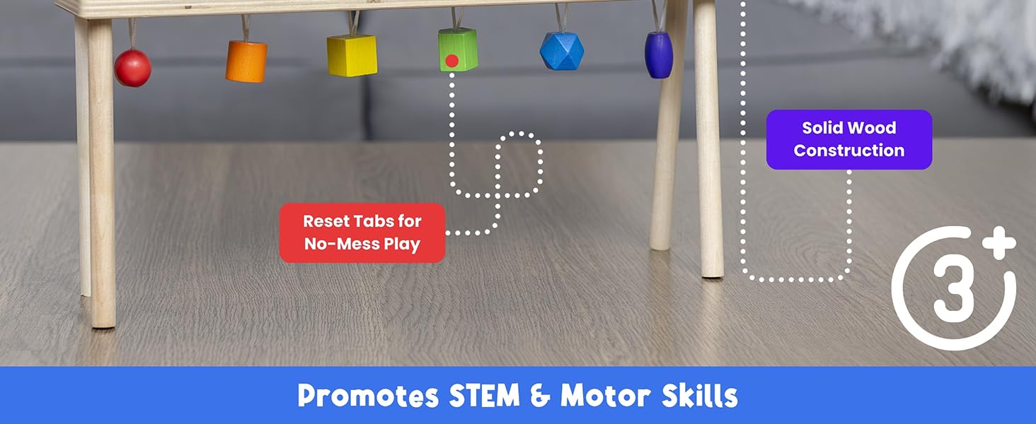 MEAVIA Wooden Falling Domino Wall/Stand is a compact, dual-use domino set designed for kids 3+. Featuring 5 colorful wooden dominoes mounted on a sturdy frame, it can be wall-hung or placed on a tabletop. Crafted from quality beech and pine wood with safe, vibrant paint, it promotes fine motor skills, color recognition, and cause-effect learning—all without the mess of loose pieces.