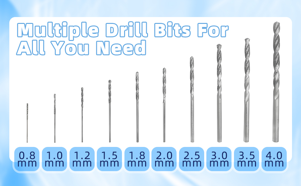 Flylin Twist Drill Bits, 10 Pcs Diamond Tipped Drill Bit Set Heavy Duty Micro Diamond Drill Bit Set for Glass Tile Jewelry 0.8 mm 1.0 mm 1.2 mm 1.5 mm 1.8 mm 2.0 mm 2.5 mm 3.0 mm 3.5 mm 4.0 mm