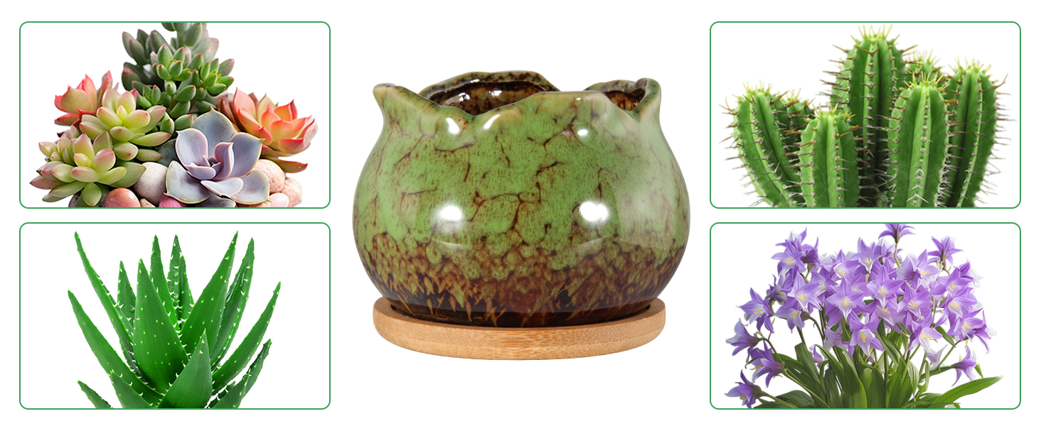 Laerjin Succulent Pots are a set of six 4-inch ceramic planters, each featuring a drainage hole and paired with a bamboo tray for stability. Designed with colorful glaze finishes and a modern minimalist aesthetic, these pots are ideal for indoor succulents and small plants, promoting healthy growth while enhancing any home or office environment.