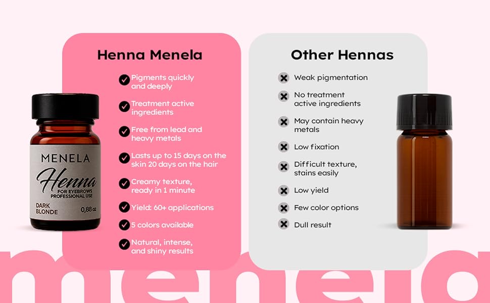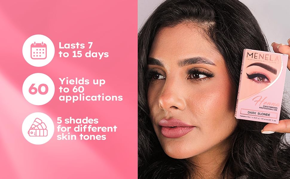 MENELA Eyebrow Henna Tint Kit offers a natural-looking dark blonde tint enriched with bamboo extract for healthier brows. Featuring a nanotechnology-enhanced formula, it delivers up to 15 days of long-lasting color. The ammonia-free, vegan, and cruelty-free composition makes it ideal for sensitive skin, while the complete kit ensures a fresh, professional-grade application experience.