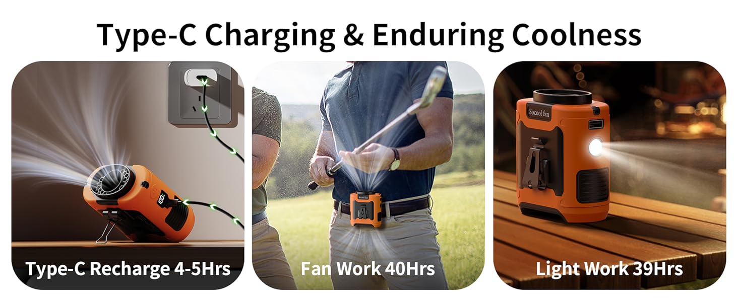 A Lifesaver in the Florida Heat – Worth Every PennyI brought this Socool waist fan for a recent trip to Disney World, and honestly—this thing saved me in the Florida heat.🔹 What I Loved:• Powerful airflow – The 5 speed settings made it easy to find the perfect level. Even on the 3rd setting, it kept me cool while standing in long lines under the sun.• Long battery life – I used it for two full park days (on and off) without needing to recharge. The 10,000mAh battery is no joke!• Hands-free design – Clipped it onto my waist and forgot it was even there. So much more convenient than a neck fan.• Built-in flashlight – This came in handy navigating back to the hotel at night.• Cute & compact – The pink color was adorable and matched my outfit while being super functional.🔹 A Few Notes:• It does produce some white-noise-level sound on higher speeds, but nothing disruptive.• The clip is strong but might slip a bit if you’re wearing loose clothing—worked best on a waist band, belt loop or backpack strap.🌟 Final Thoughts:If you’re headed to a theme park, outdoor event, or camping trip—especially in hot climates—this fan is a game changer. It made my time in Disney so much more bearable and comfortable. I wouldn’t do a summer trip without it again.