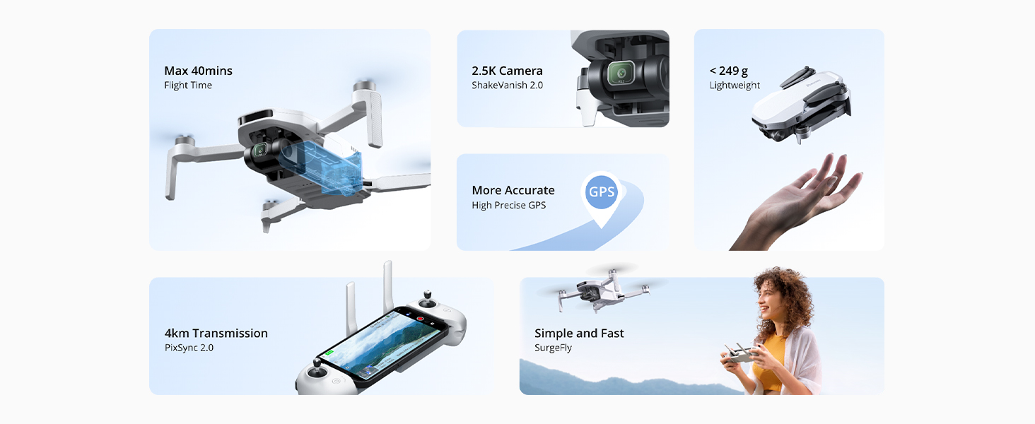 | Special Features | 4km video transmission, GPS Follow me, Level 5 Wind Resistance, Long Battery Life, One Button Auto Return |