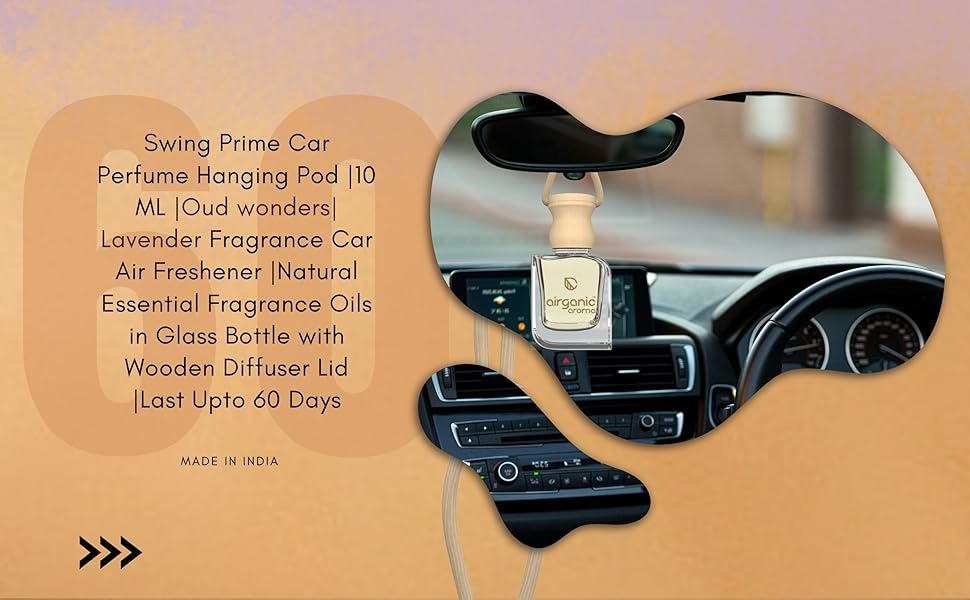 The Aroma Swing Combo by AIRGANIC offers a premium car fragrance experience featuring two 10ml Oud Wonders and one 10ml Lavender essential oil blend in elegant glass bottles with wooden diffuser lids. Designed for wide coverage and all-season performance, this combo ensures your car interior stays fresh and inviting 24/7, combining luxury aesthetics with long-lasting, climate-resilient scents made in India.