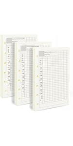 The A7 Planner Refill offers 3 packs of 135 thick, ivory white sheets (270 pages) sized 4.72'' x 3.34'', designed for 6-ring binders. Its premium, bleed-resistant paper supports smooth writing with various pens while protecting your eyes. Durable and versatile, it’s perfect for professionals and students seeking a compact, refillable planner solution.