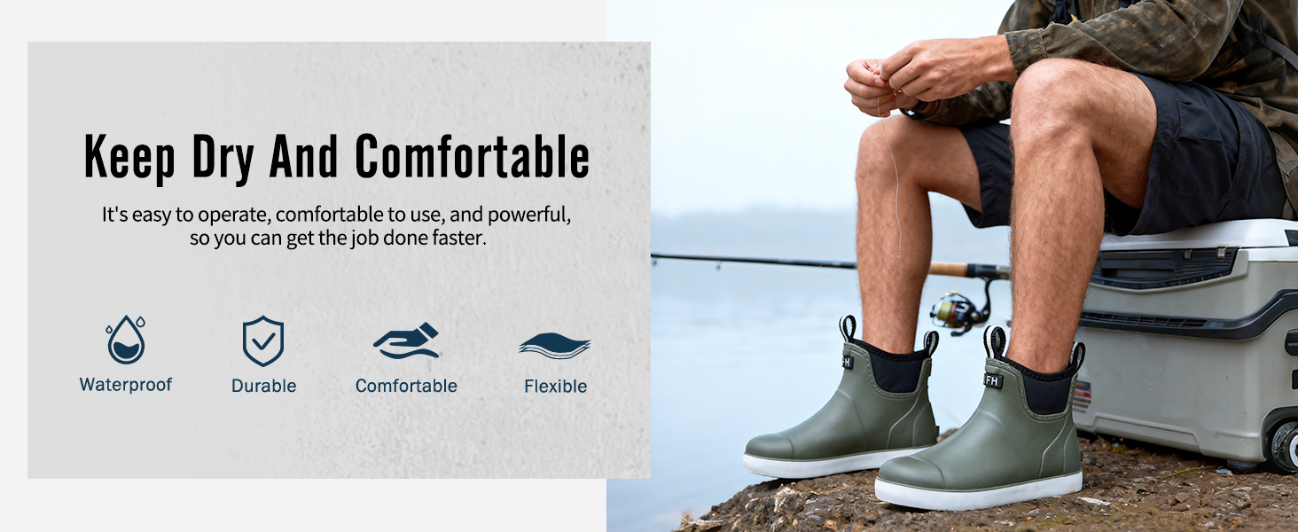 Men's Deck Boots, Waterproof Ankle Rain Boots Men Anti-Slip Traction, Outdoor Rubber Fishing Garden Boots High-Performance Shoes for Farming