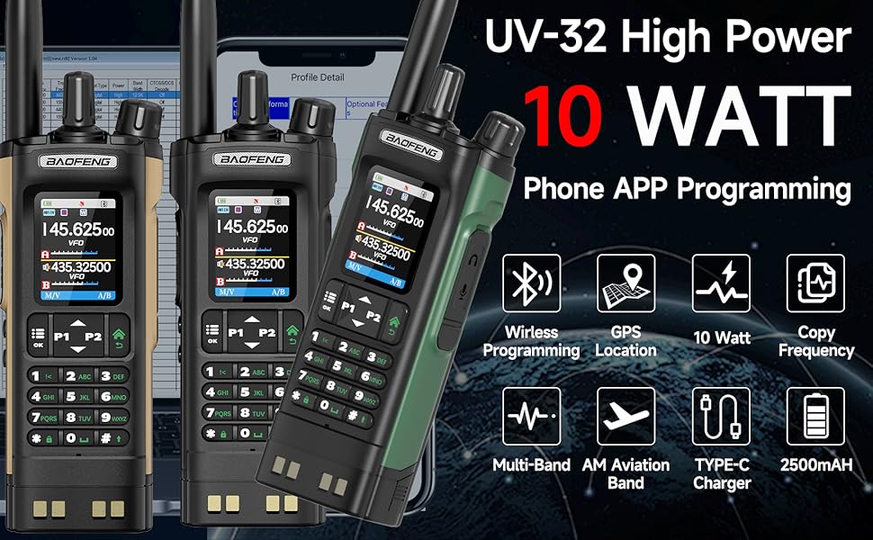 The UV-32 Ham Radio is a powerful 10W handheld two-way radio featuring a 15.35-inch high gain antenna for extended communication range, a 2500mAh rechargeable battery with USB-C fast charging, and built-in GPS. It supports flexible frequency programming via app or manual input, includes NOAA weather alerts for real-time emergency updates, and integrates multiple survival tools like an LED flashlight and alarm, making it an essential device for professionals and outdoor enthusiasts seeking reliable, long-distance communication and safety.