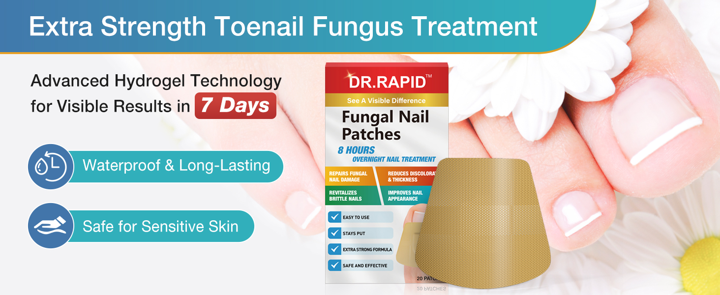This Extra Strength Toenail Fungus Treatment features 20 waterproof hydrogel patches that provide continuous 8+ hour medication delivery overnight. Designed for both toenails and fingernails, the dermatologist-tested formula penetrates deeply to restore natural nail appearance, improve thickness, and reduce discoloration within 7 days, all while being safe for sensitive skin and active lifestyles.