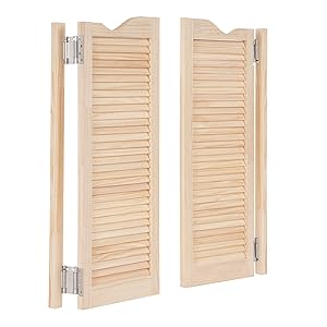 The Modern Swinging Door Cafe Door is a 31.9"x40.9" double wooden louvered door crafted from premium pine wood and aluminum alloy. Designed for smooth, quiet 180-degree swings without rebound, it enhances privacy and room layout while being eco-friendly and easy to install. Perfect for kitchens, shops, or home entrances, it combines rustic charm with practical durability.