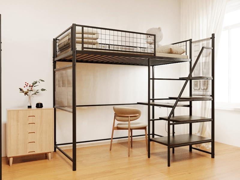 Lumisol Loft Bed With Desk Twin Size Metal Loft Bed | Desertcart Thailand
