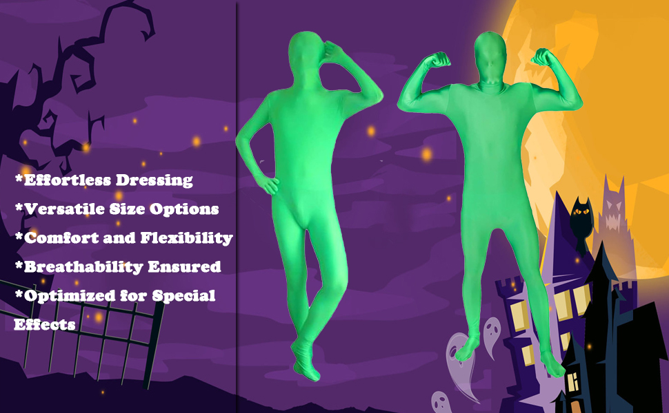AndoerGreen Screen Suit,Full Body Photography Chromakey Green Bodysuit Stretch Unisex for Special Effect Festival Cosplay