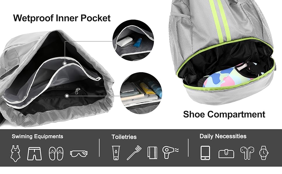 I purchased this bag in December 2023 when I started swimming regularly at the gym pool. It’s been about 6 months since purchase and while this bag has been perfectly serviceable, I am now looking for a better bag for pool use.If you are just using this bag occasionally, I think it’s a good buy. It’s held up well for me. No broken zippers, holes or tears. The dedicated wet section inside is great to have. The extra (or shoe) compartment has been a super useful feature.However, for someone who expects to use this bag often (I swim 2-3x per week), I say spend some extra money and get a different bag. You will feel this bag’s limitations and design flaws over time, as I have. I hate the strap / tie opening. Somehow has gotten harder and harder to pull open and doesn’t quite open all the way now. I put my regular clothes in the bag as well and it gets wet when I’m putting my swim suit, goggles, and cap etc after a shower in the wet compartment because the compartment is right in the middle of the bag. I think it would be better to have a removable wet compartment, and would make it easier to clean. Also, the straps are just a regular fabric and I wish it was a little more waterproof.Overall, this bag is a step above a regular string tie gym bag but it does have limitations for someone who is in the pool often.
