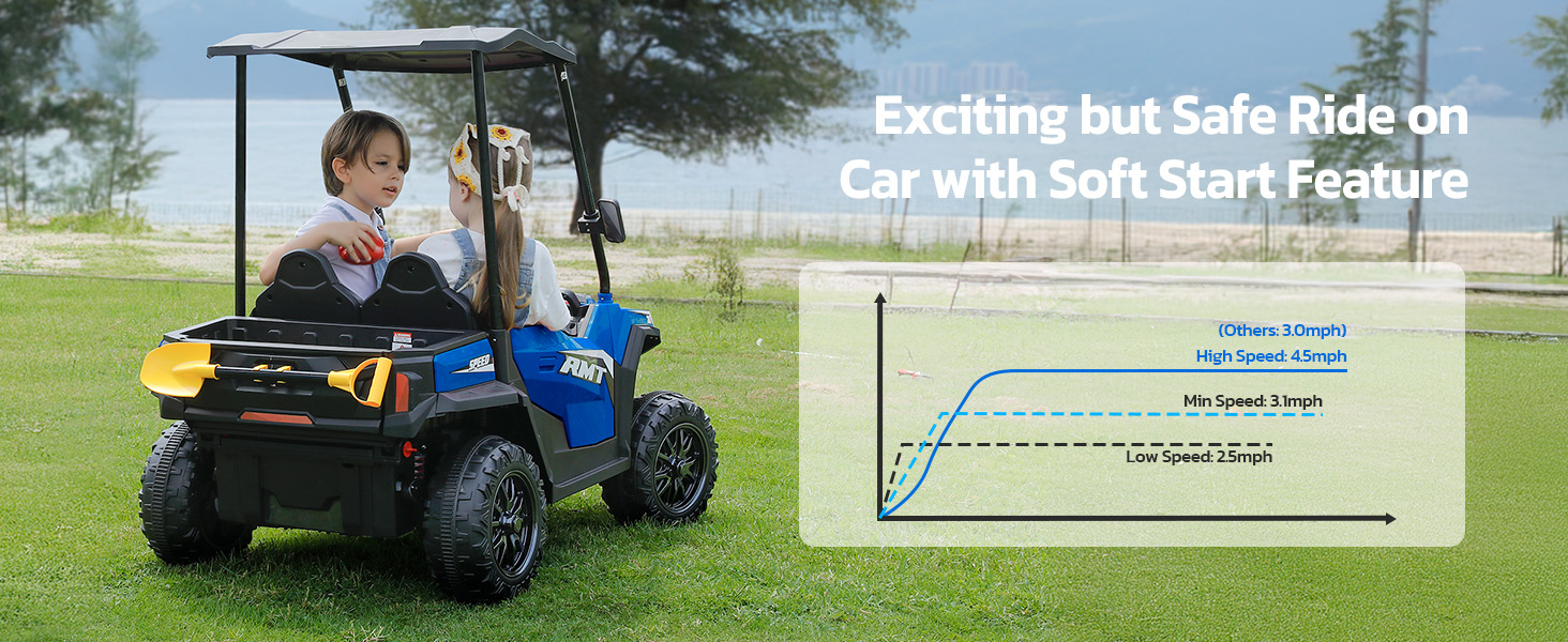 Don't buy it.!! It fLls apart in less than a month. I read all the reviews I could find and compared every brand of kids 4x4 buggy's. At first it seems like a solid option, but the reality is the build quality is junk where it matters. It has a critical design flaws that caused the front and rear to separate, which is also a safety nightmare with little kids. This joint area is held together with a few crappy screws and cheap plastic. Only used about 10 times on flat land. Real shame as it's super expensive and was bought as a birthday present. Avoid junk quality cheap plastic like thisUpdate. I just saw the return window is only about a month long. You can see why. They know it will break on you.