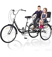 This adult foldable tricycle features a robust 20-inch high-carbon steel frame with shock-absorbing fork, supporting riders up to 550lbs. Equipped with a child seat, padded rear seat, disc brakes, and a double chain drivetrain, it offers stability, comfort, and safety. Its foldable design and rear basket make it ideal for city dwellers seeking a versatile, easy-to-store ride.
