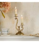 The NIKKY HOME Gold Bow Iron Taper Candle Holders Set of 2 features a vintage-inspired gold bow design crafted from hand-forged iron. Measuring 11 and 9 inches tall, these heavy, stable holders fit standard 3/4 inch taper candles or LED alternatives. Perfect for elegant dining, weddings, mantles, or gifting, they combine timeless style with artisanal durability.